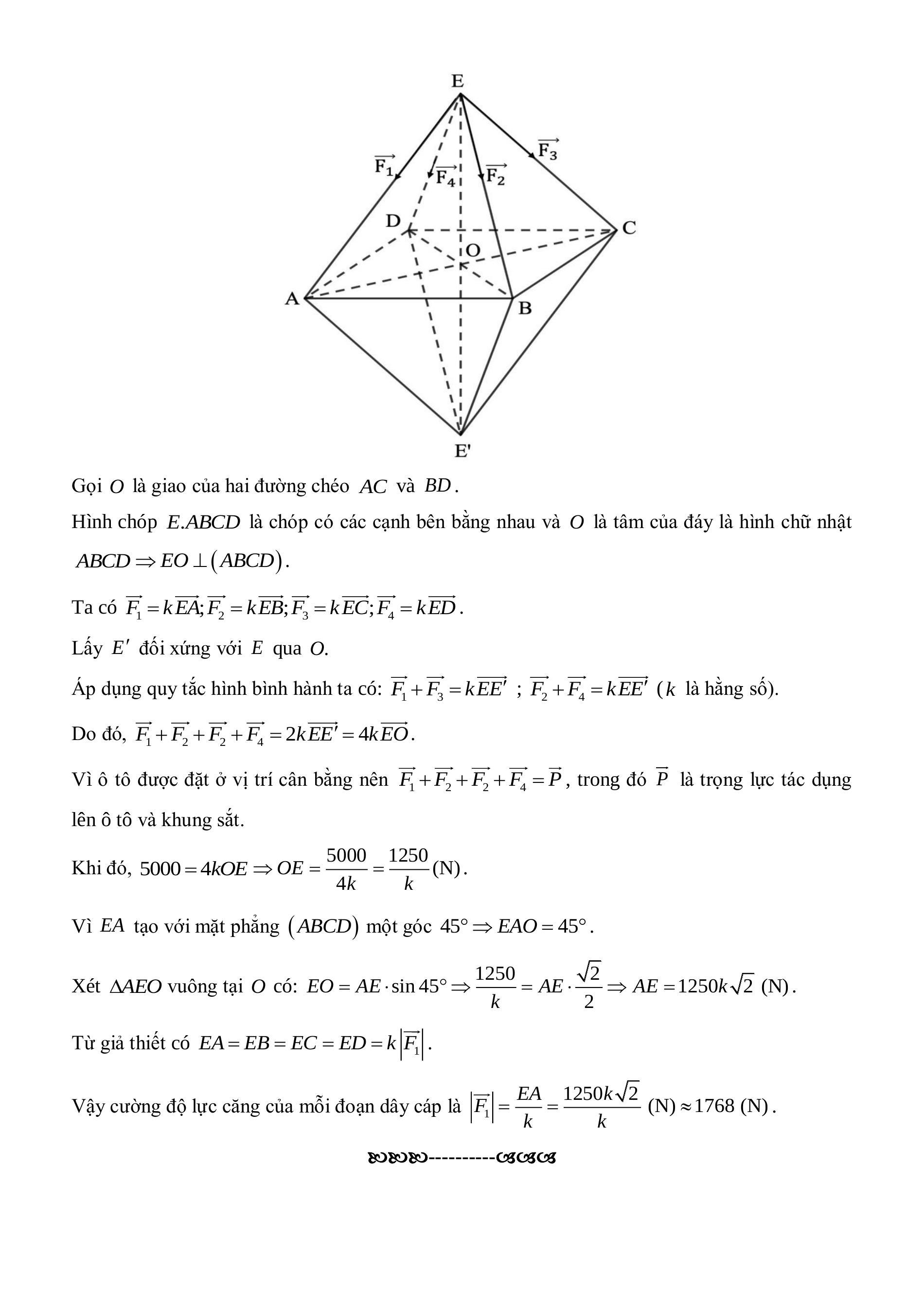 Vậy cường độ lực căng của mỗi đoạn dây cáp là F1=kEA=k1250k2(N)≈1768(N).