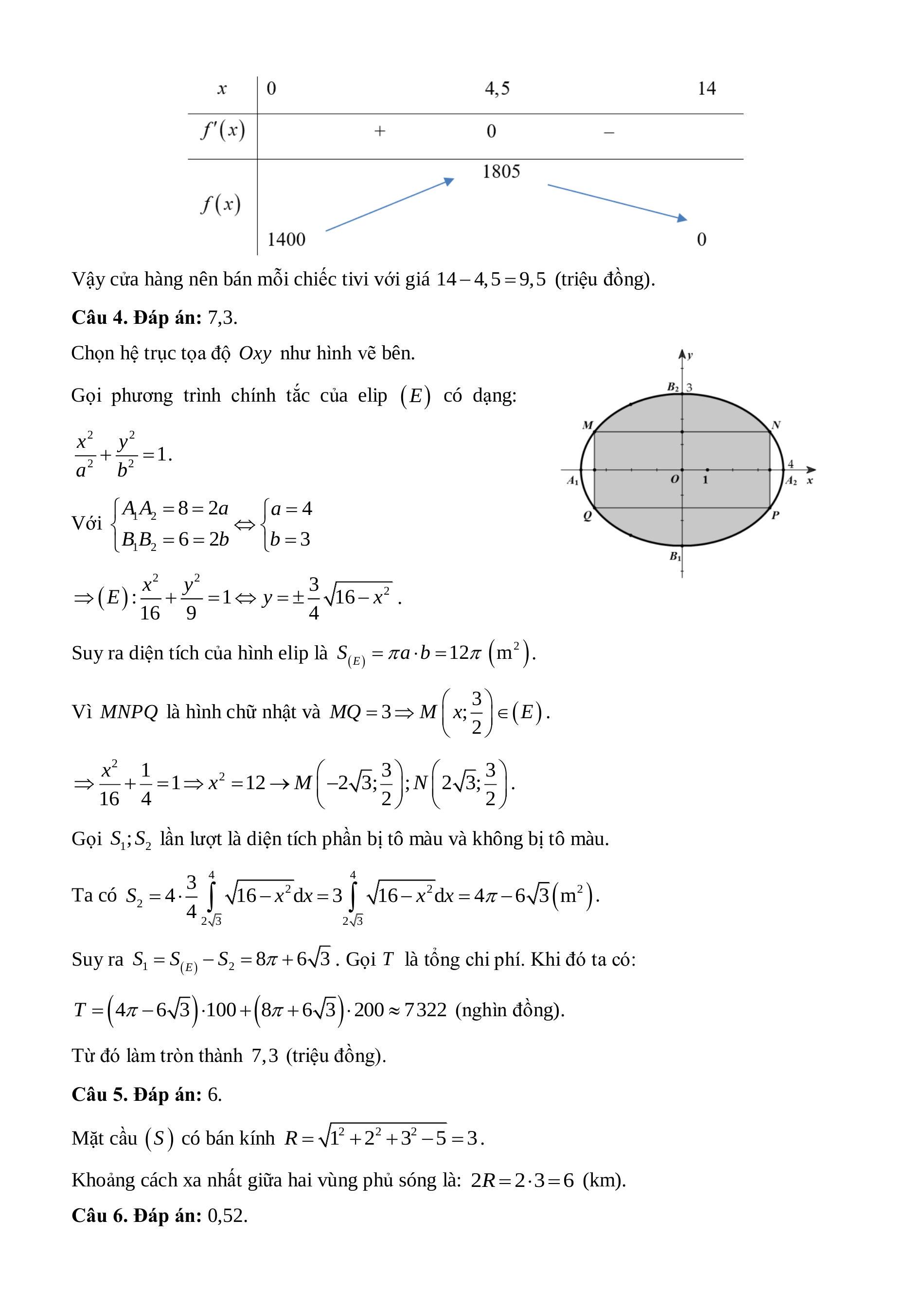 Suy ra S1=S(E)−S2=8π+63. Gọi T là tổng chi phí. Khi đó ta có:
