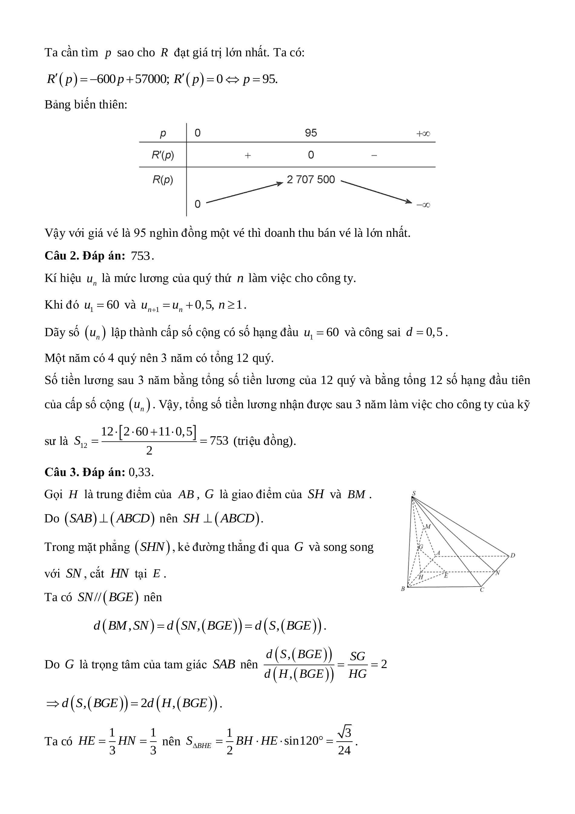 Do đó d(H,(BGE))=S△BGE3VGBHE=4213. Vậy d(BM,SN)=2⋅4213=1421≈0,33.
