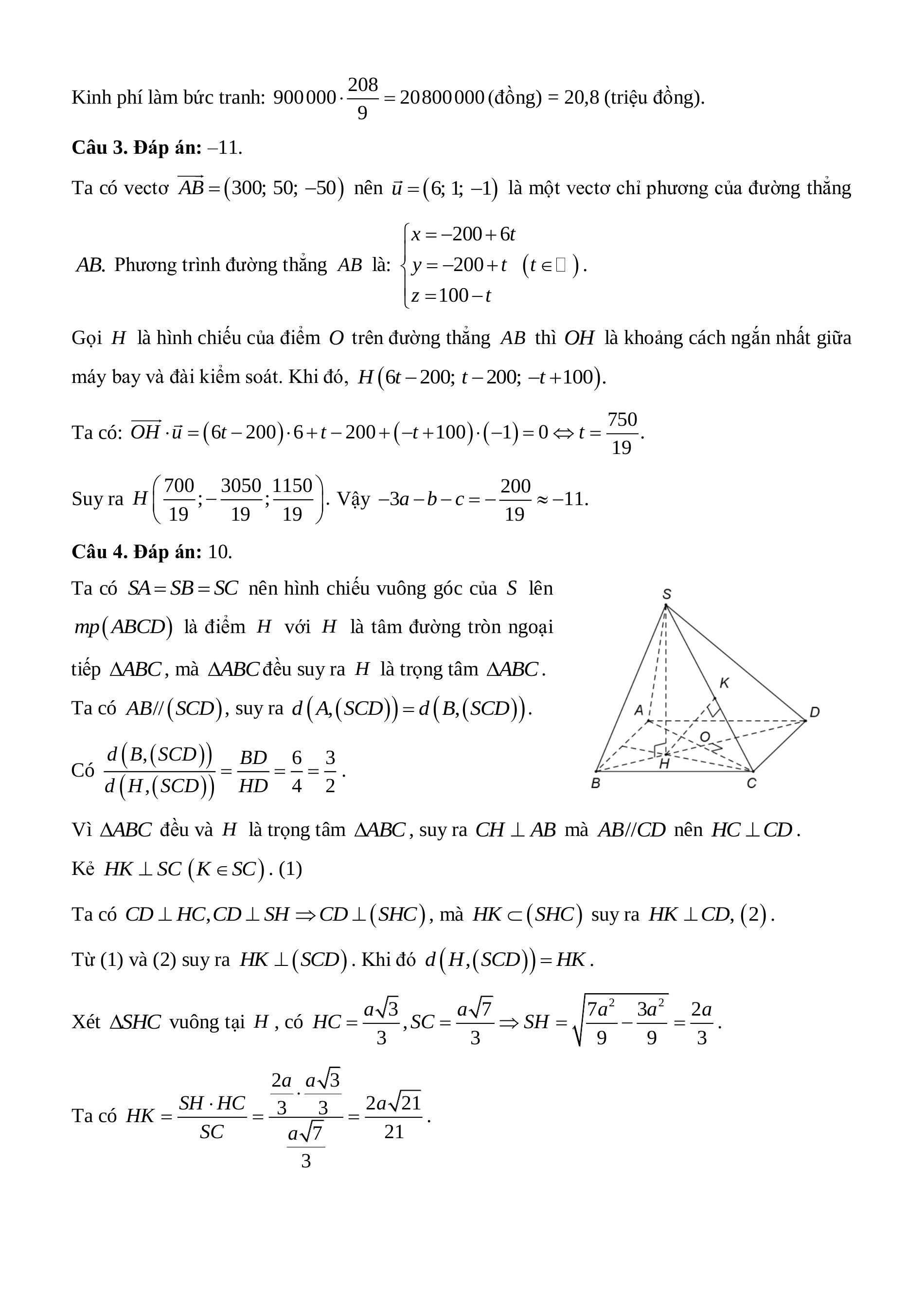 Suy ra d(A,(SCD))=d(B,(SCD))=23⋅212a21=a73.