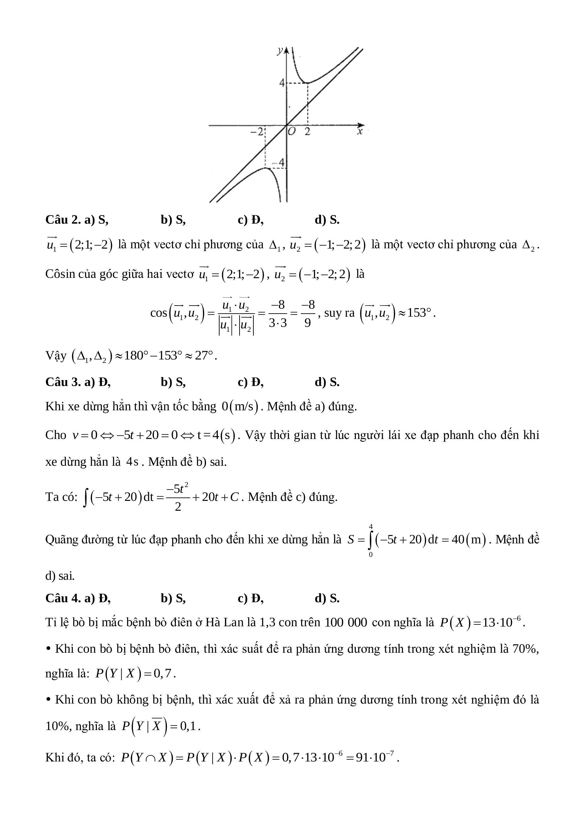 Câu 1. a) Sai, b) Đúng, c) Sai, d) Đúng.