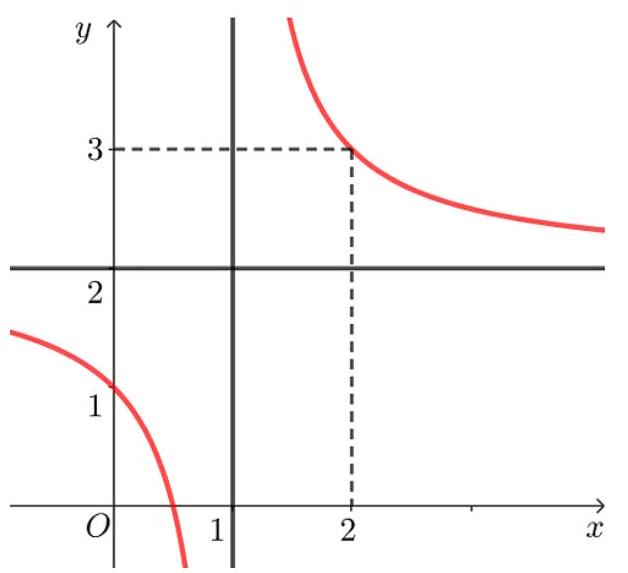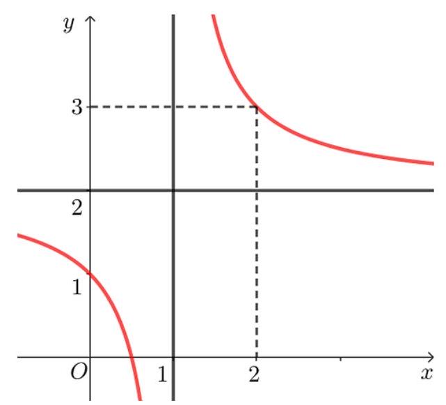 Đồ thị hàm số cắt trục tung tại điểm (0;1), cắt trục hoành tại điểm (21;0) và đi qua điểm (2;3). Đồ thị của hàm số đã cho như hình dưới đây.